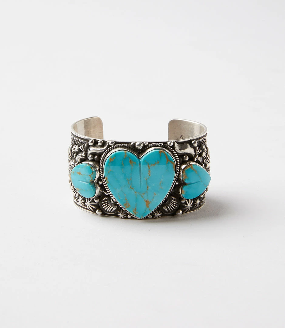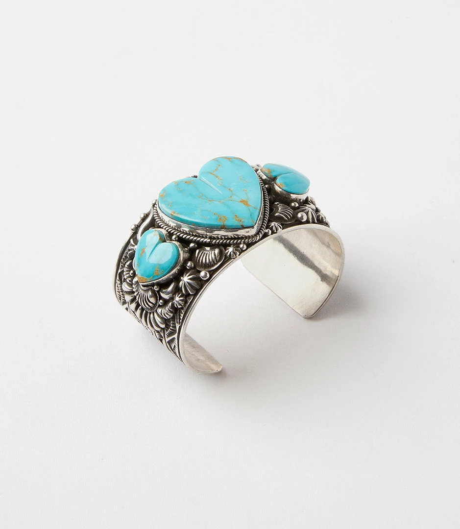 Self-taught Navajo artist and renown silversmith, Tsosie Orville Wright, crafted this unique piece by hand. It features multiple authentic natural turquoise stones set in pure sterling silver. Truly unique, this item is one-of-a-kind and is only available for purchase by a single person. After it’s sold, there won’t be another chance to get it.