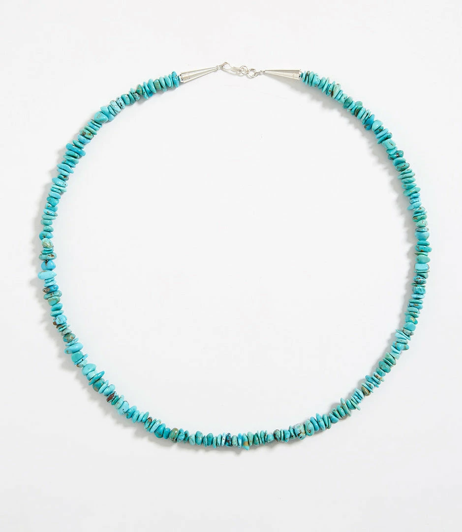 Made by Navajo Artist Sharon Garcia, this beautifully crafted bracelet is made of turquoise stones with hints of earthy tones.