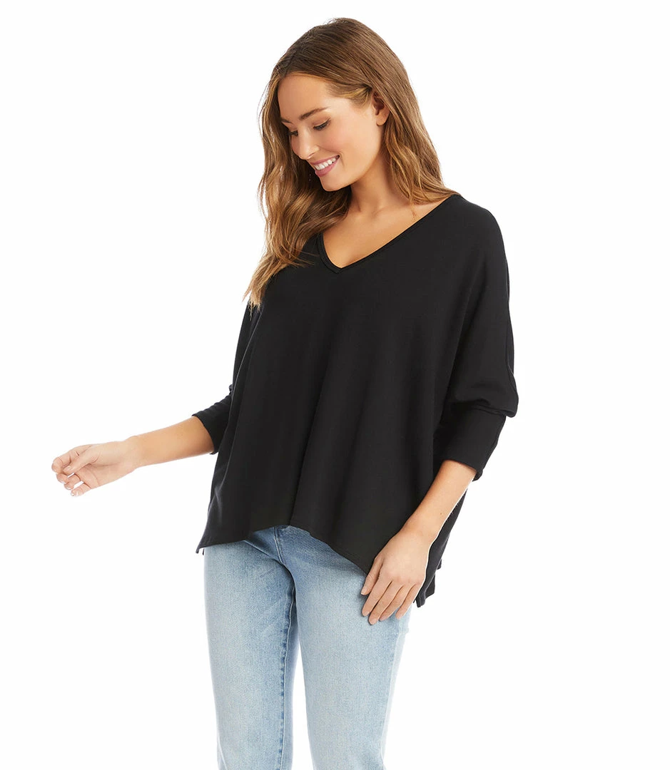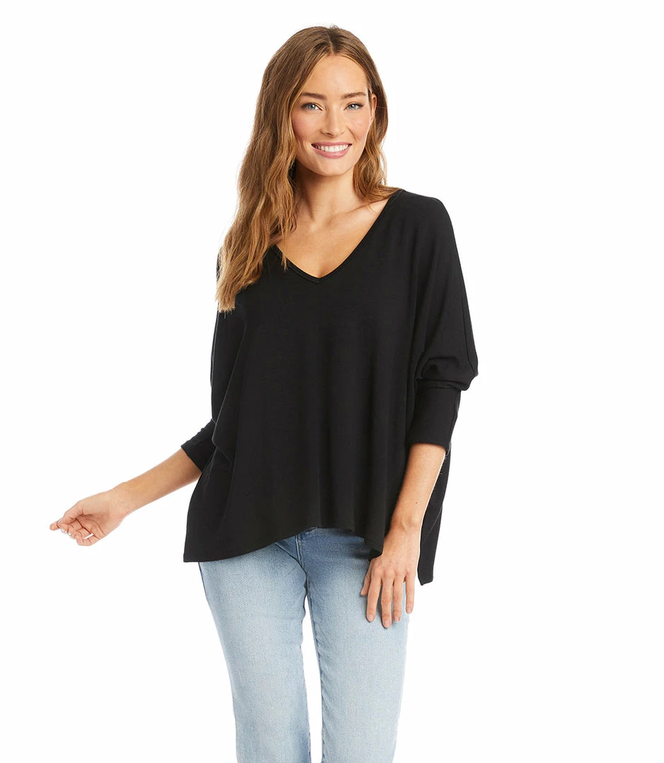 With an oversized silhouette and buttery soft french terry fabrication, this v-neck top is sure to be wardrobe staple. Perfect for layering or simply paring with denim.