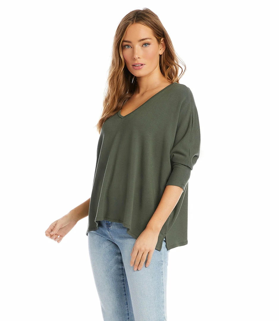 With an oversized silhouette and buttery soft french terry fabrication, this v-neck top is sure to be wardrobe staple. Perfect for layering or simply paring with denim.