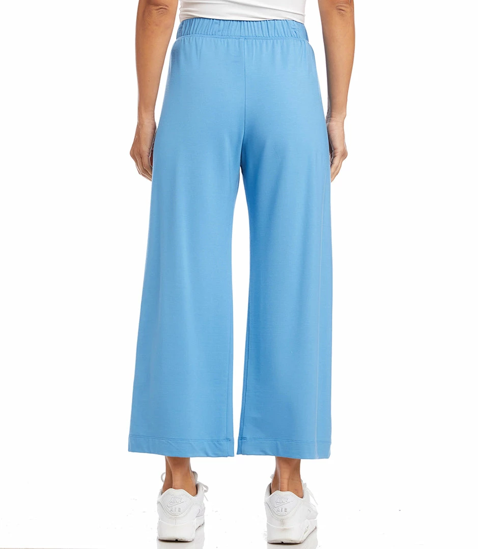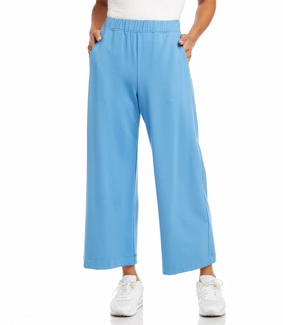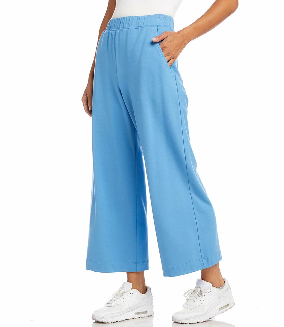 A wardrobe essential, these versatile french terry pants offer a comfortable nipped-in elastic waistband that slims its blouson, wide-leg silhouette. It features sleek side pockets.